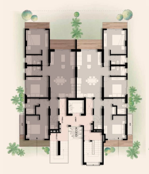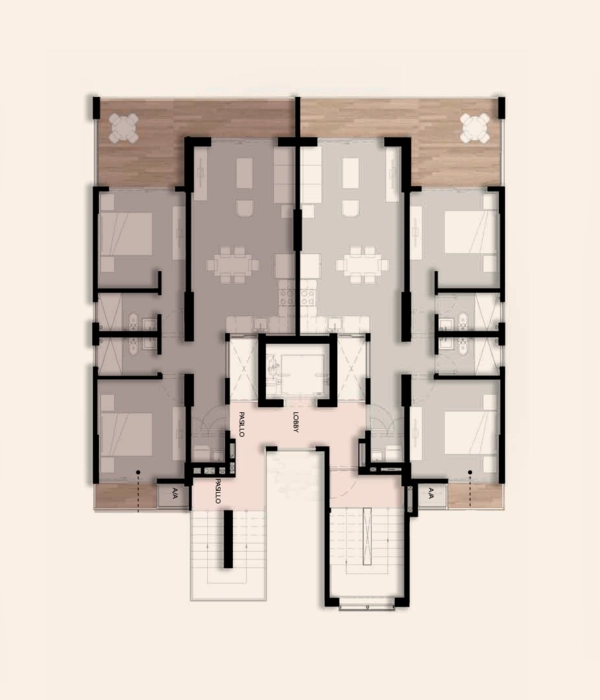 This level offers two distinct options: a 2-bedroom apartment with a private rooftop, or a 3-bedroom apartment with ample living space.