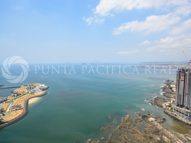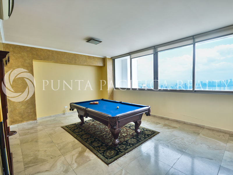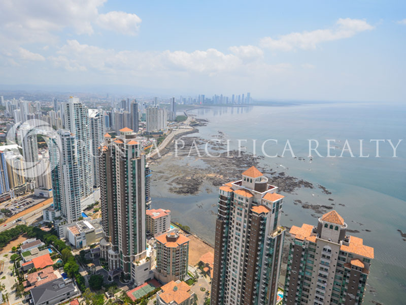 This luxurious one of a kind 742 m2 Duplex is located in the heart of Punta Pacifica. The apartment is spacious and excellently structured. As you enter, you’ll encounter a high top living room with incredible space for the whole family to enjoy with and a wide balcony, where you can enjoy the most spectacular sunsets of Panama, the kitchen room is tastefully equipped with fine appliances of high quality and upstairs 4 loose-fitting bedrooms also, there are four bathrooms, The apartment has four larger number of built-in closets and separate laundry facilities make this apartment very functional for life. In a great location, very comfortable, this apartment is missing is you and your family.