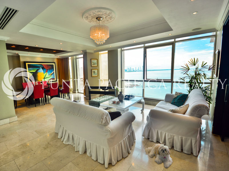 This exclusive apartment is housed within the most modern building complex in Punta Pacifica. The apartment is placed in one of the towers surrounded by greenery and parks. It consists of a beautiful living room, including the dining area and a kitchen including appliances. Ceiling height is above the standard, while large window surfaces allow an abundance of natural light and provide an exceptional view. This room exits to a spacious terrace that overlooks the Pacific ocean. The apartment has central air conditioning.