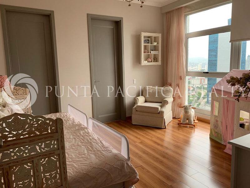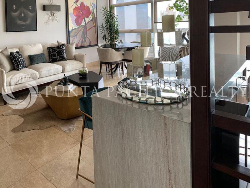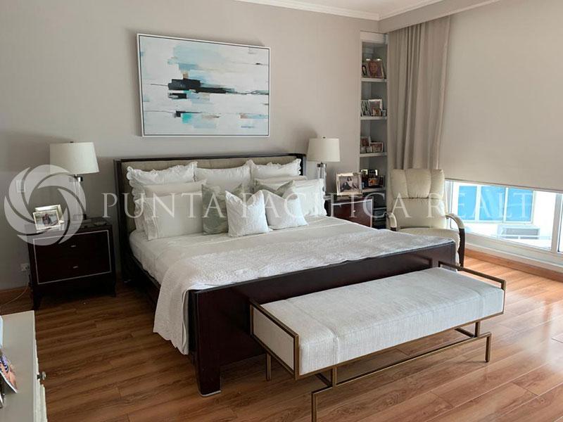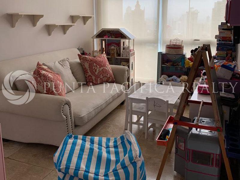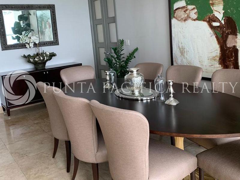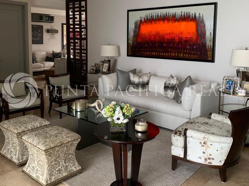 Amazing property located in Punta Pacifica. , where you can easily and quickly access all parts of the city. The apartment is very spacious and bright, with excellent structure. The Central Hall of the apartment ends with a comfortable living room with a dining area as a whole and an exit to the balcony. The living room is tastefully equipped with furniture of high quality with large ambients. The apartment has three loose-fitting bedrooms, two of which are with double beds. Also, there are three bathrooms. A larger number of built-in closets and separate laundry facilities make this apartment very functional for life. The kitchen is a spacious and bright, very modern design, with storage. In a great location, very comfortable, this flat is an oasis of peace and relaxation.
