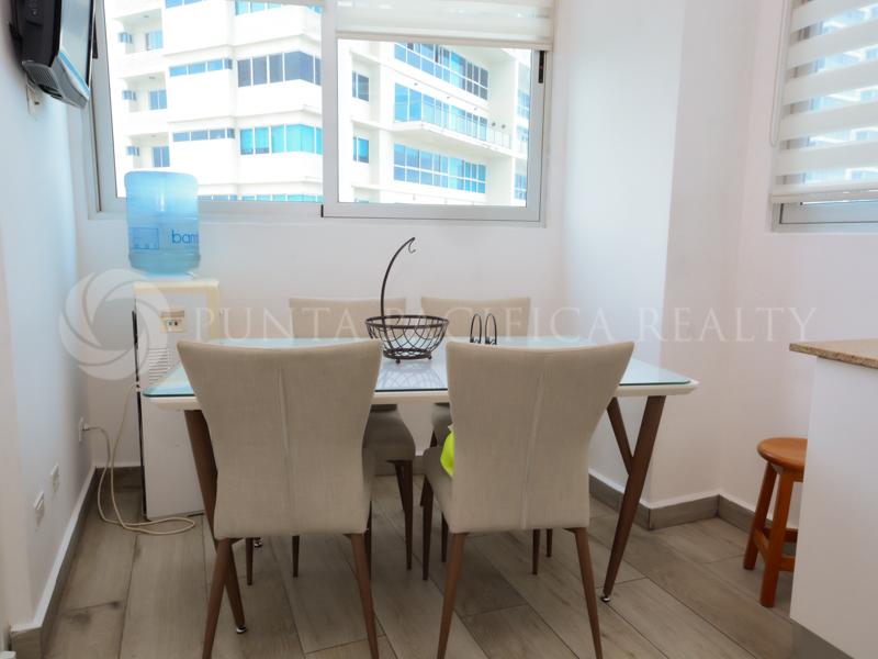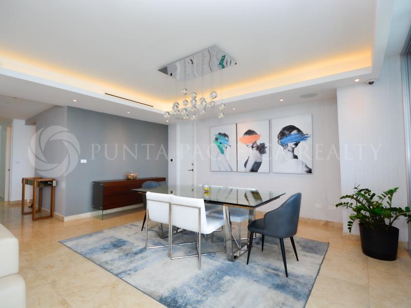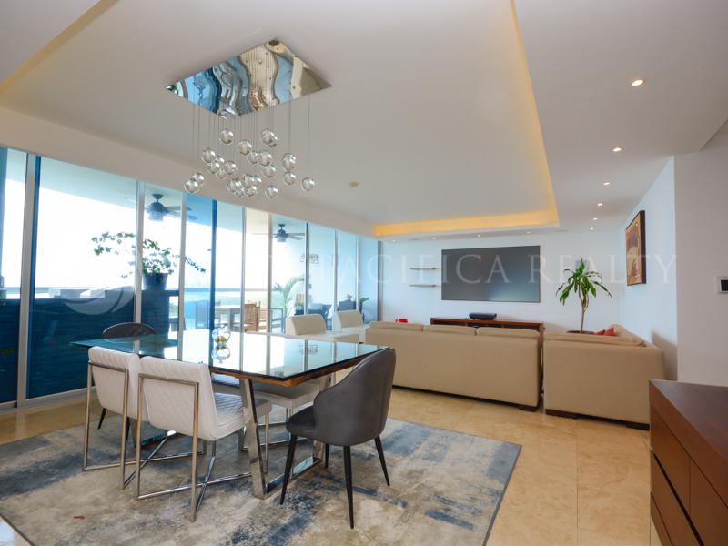Luxurious apartment fully furnished located on the first line of Costa Del Este with panoramic ocean view & skyline. Decorated taking care of every detail for excellent living. Immaculate living room, dining room, and balcony with direct ocean views. The rest area has 3 bedrooms and 3.5 bathrooms, the main room have a bathtub with a spectacular view of the sea.